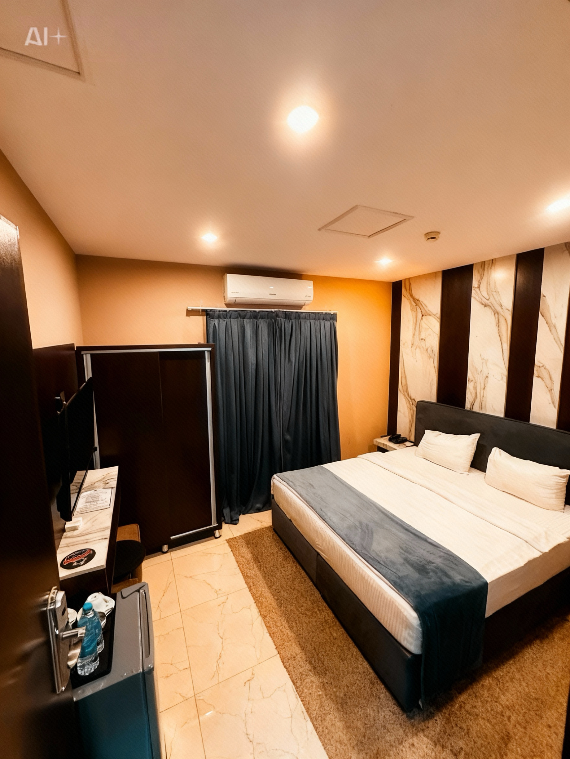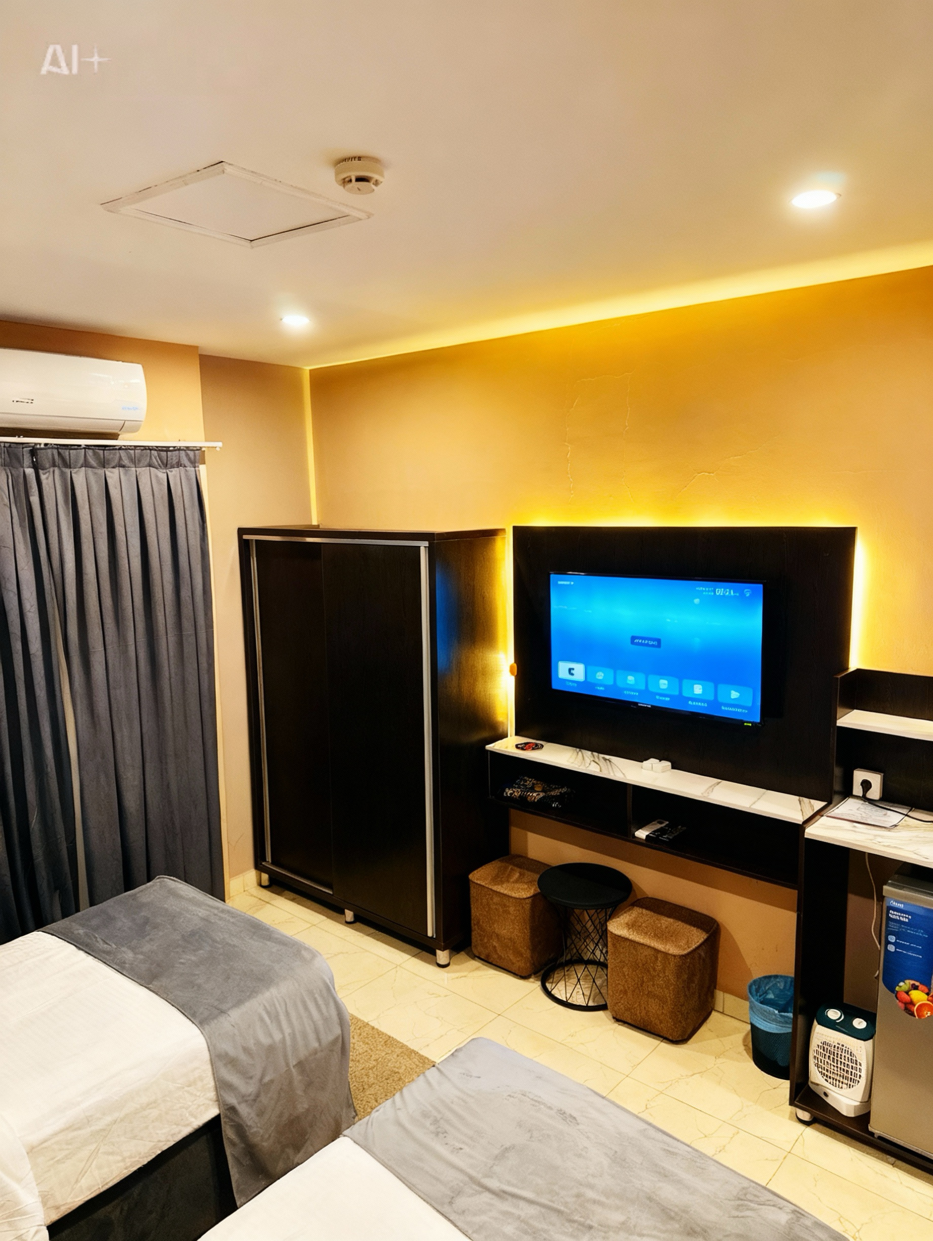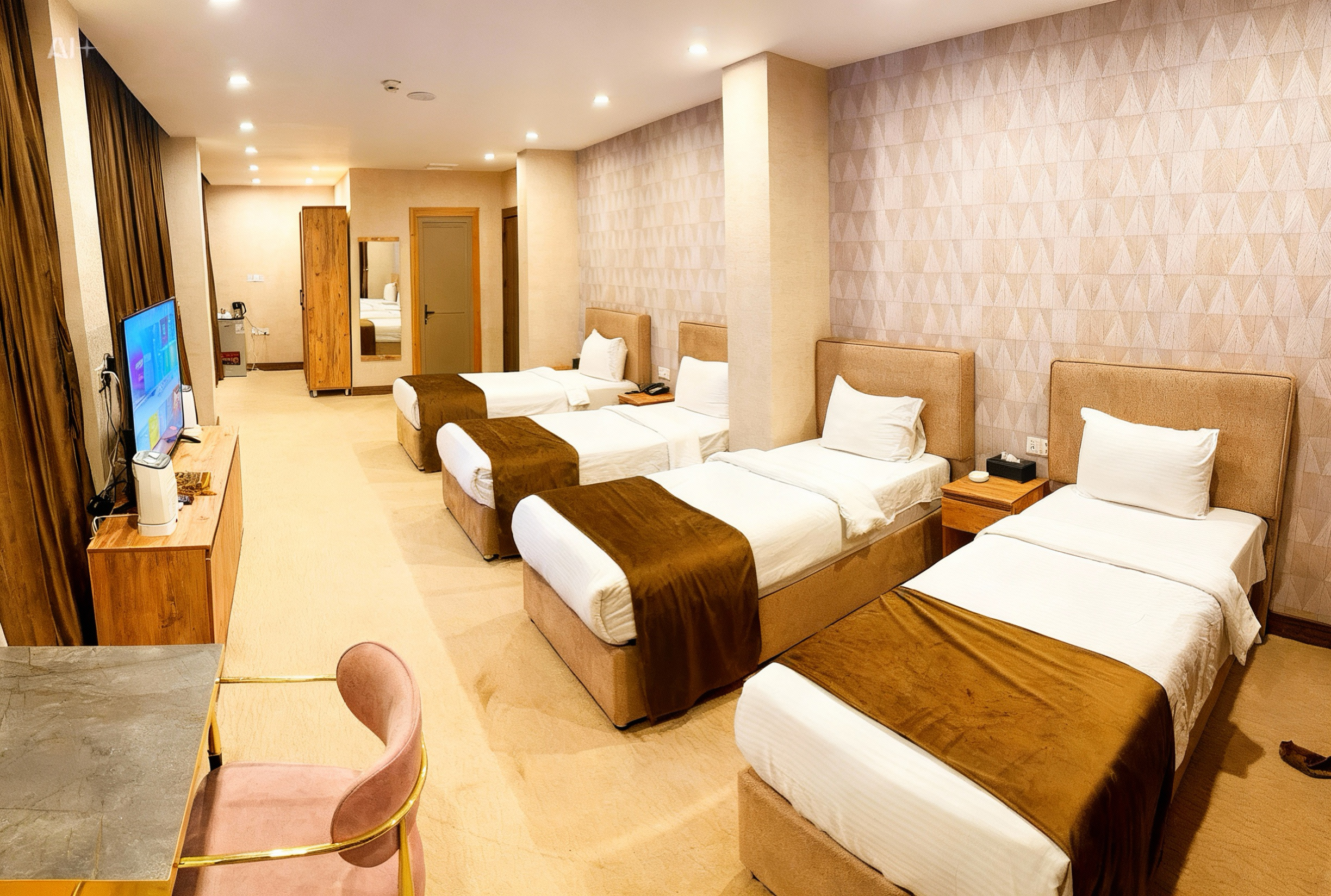 نقدّم لضيوفنا مجموعة متكاملة من وسائل الراحة والخدمات التي تضمن إقامة مميزة تجمع بين الراحة والفخامة. تحتوي الغرف على شاشات كبيرة لعرض أحدث البرامج، بالإضافة إلى شاي وقهوة ومياه مجانية طوال فترة الإقامة. كما نوفر خدمات التدبير الفندقي اليومية و خدمة اللوندري لضمان أعلى مستويات النظافة والراحة. تشتمل الغرفة أيضاً على صابون وشامبو فاخر و خزنة آمنة لحفظ المقتنيات الثمينة. ويمكن للضيوف الاستمتاع بـ المسبح المغلق و وجبة إفطار صباحية متنوعة، إلى جانب الإنترنت المجاني المتوفر في جميع أنحاء الفندق. ولعشاق الصحة والاسترخاء، نوفّر نادياً صحياً مجهزاً بالكامل إضافة إلى حمّام تركي وغرفة تبديل ملابس مخصصة داخل النادي، لضمان تجربة راقية ومتكاملة.