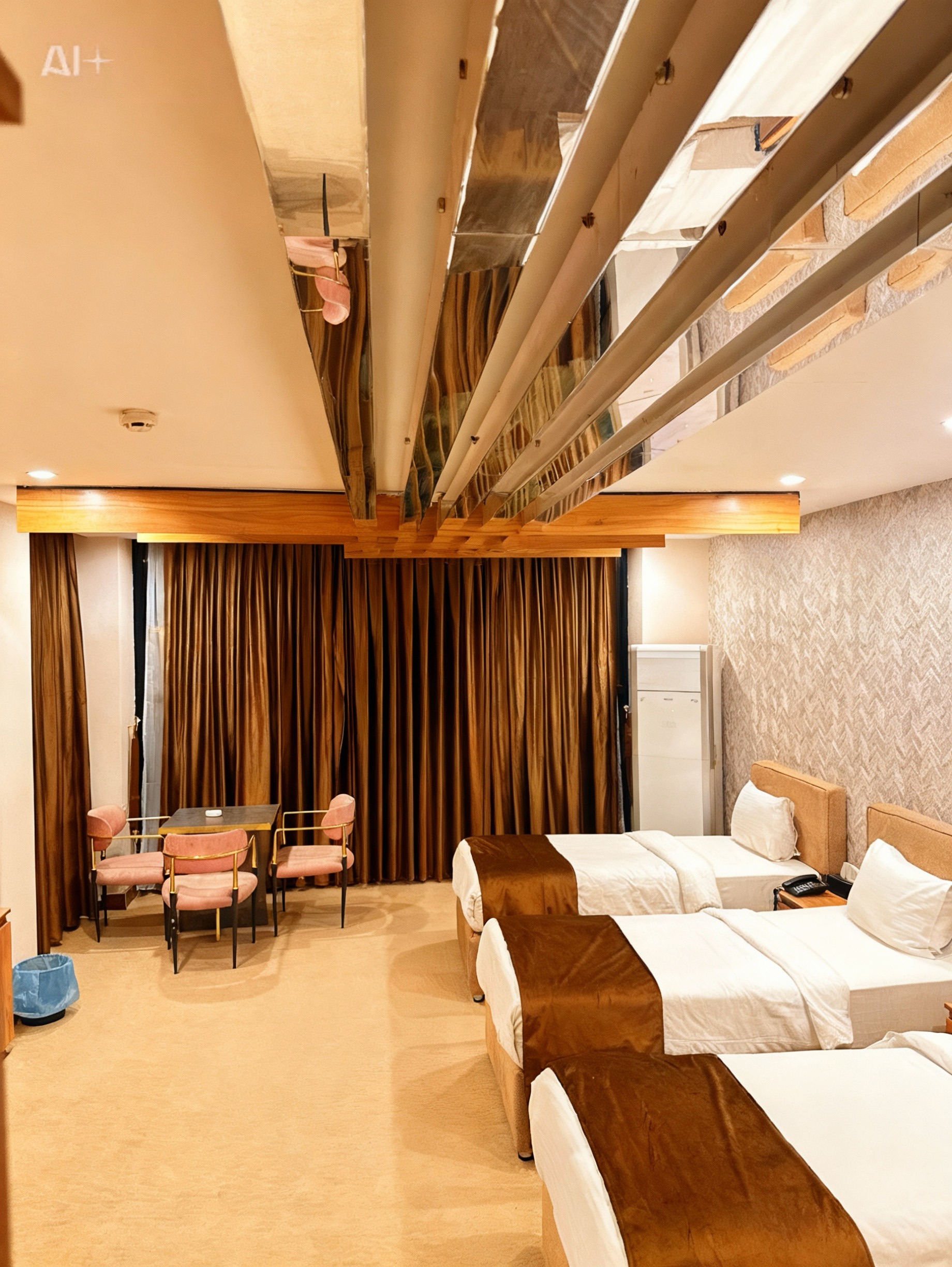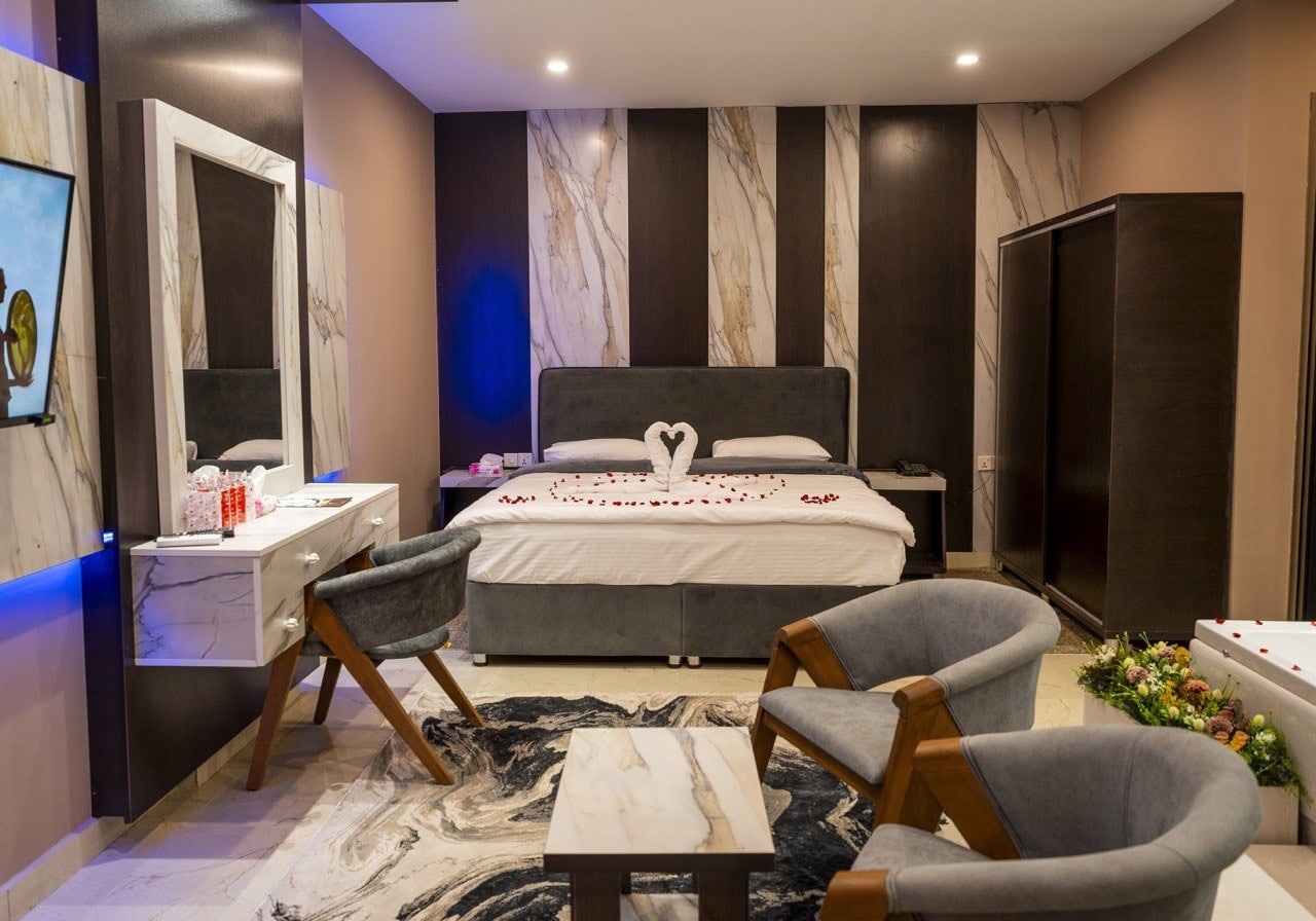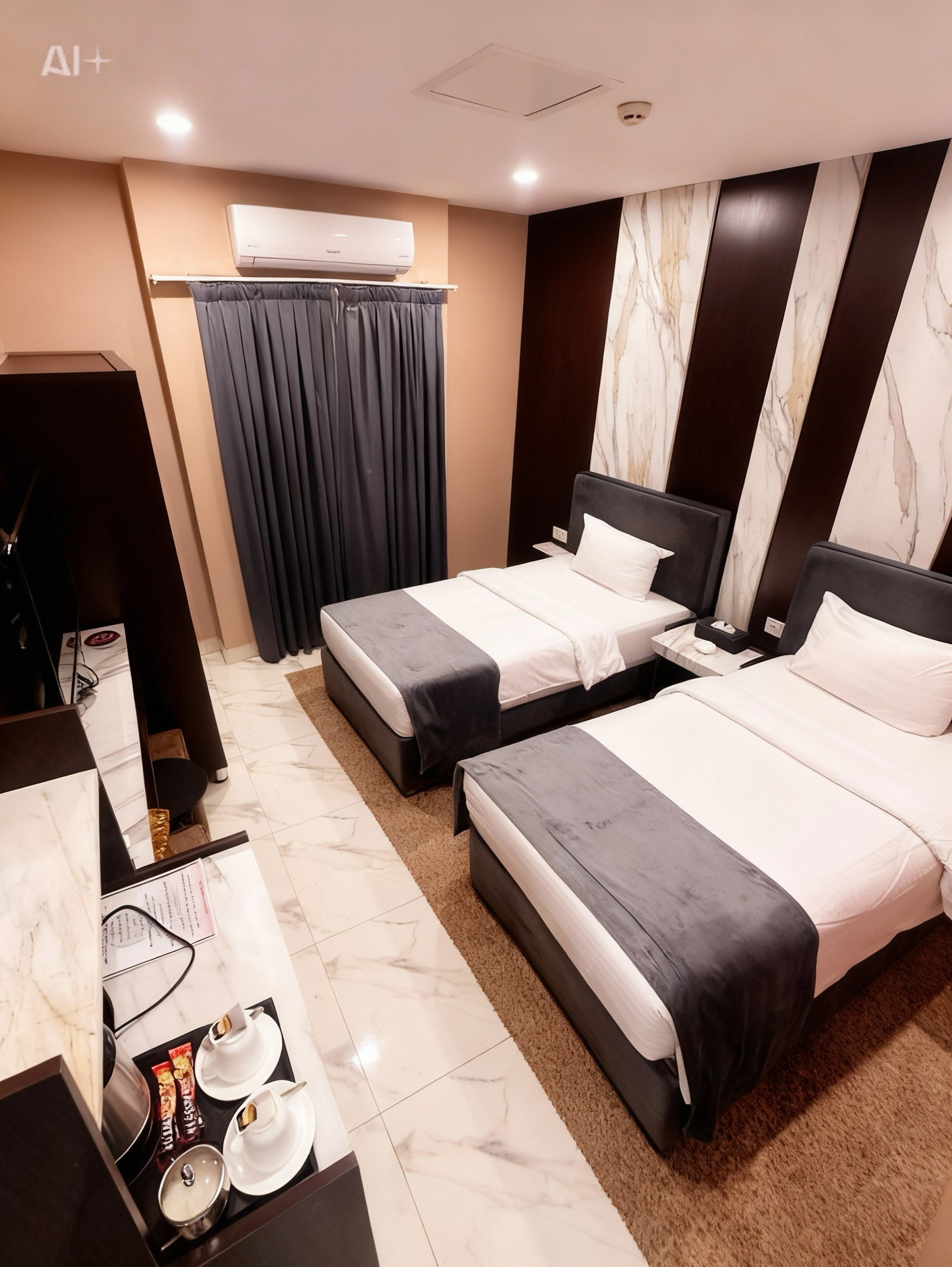 نقدّم لضيوفنا مجموعة متكاملة من وسائل الراحة والخدمات التي تضمن إقامة مميزة تجمع بين الراحة والفخامة. تحتوي الغرف على شاشات كبيرة لعرض أحدث البرامج، بالإضافة إلى شاي وقهوة ومياه مجانية طوال فترة الإقامة. كما نوفر خدمات التدبير الفندقي اليومية و خدمة اللوندري لضمان أعلى مستويات النظافة والراحة. تشتمل الغرفة أيضاً على صابون وشامبو فاخر و خزنة آمنة لحفظ المقتنيات الثمينة. ويمكن للضيوف الاستمتاع بـ المسبح المغلق و وجبة إفطار صباحية متنوعة، إلى جانب الإنترنت المجاني المتوفر في جميع أنحاء الفندق. ولعشاق الصحة والاسترخاء، نوفّر نادياً صحياً مجهزاً بالكامل إضافة إلى حمّام تركي وغرفة تبديل ملابس مخصصة داخل النادي، لضمان تجربة راقية ومتكاملة.